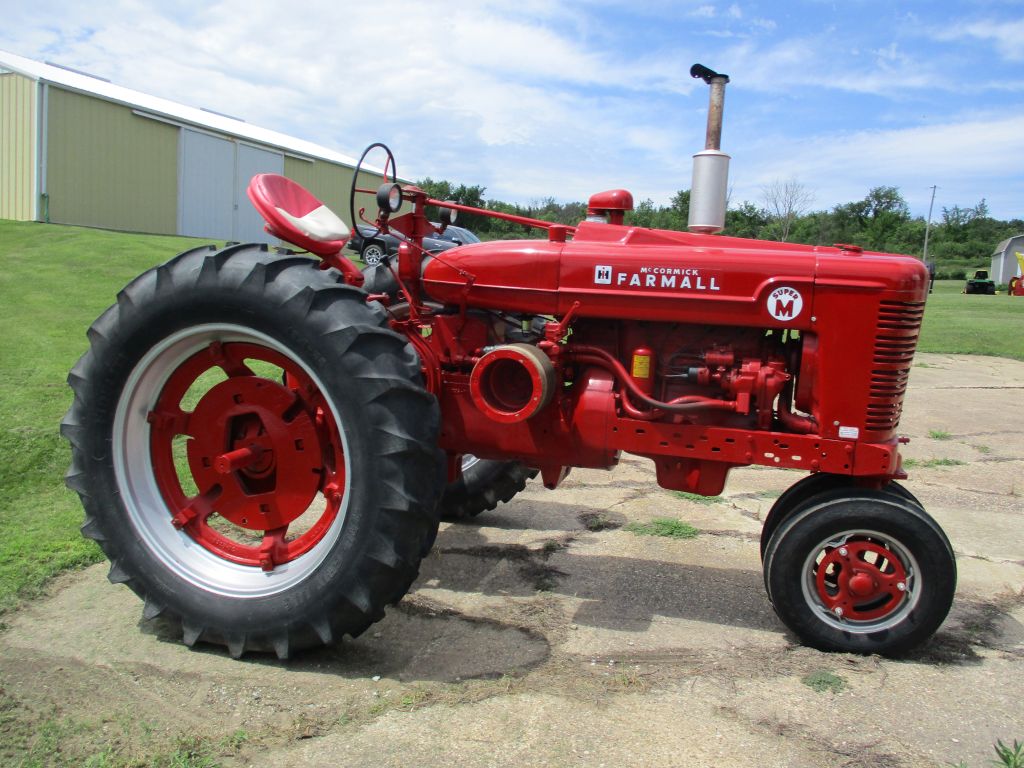 Ford 8340 SLE Power Star, MFWD, Cab, 2,724 Act. One owner Hrs. 3pt. dual Hyd, PTO, weights, very good 18.4R-38 & 14.9R-26 tires – 2016 Bob Cat S450, 2,605 Hrs. 72″ bucket, good 12-16.5 tires, new paint – Case 1840 Dsl. 1,842 Hrs. 72″ bucket, soft cab, 72″ bucket – Farmall Super M, WF, loader, 81″ bucket, newer paint, good 15.5-38 tires – Farmall Super M, NF, newer paint, good 13.6-38 – John Deere B, newer paint, good 11.2-38 tires – 3pt. Hyd log splitter – Bush Hog Squealer SQ840, 84″ rotary mower, 3pt. used once – Farm King 8′ double auger 3pt. snowblower, Hyd spout – 8′ x 14′ Wooden flat wagon, Hyd hoist – Winco Model 25PTOF-3/0 generator on trailer – Skid loader pallet forks – 62″ Rock bucket – Limb Hog Skid loader Mnt. Hyd chain saw