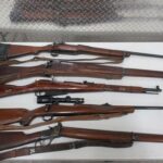 Hecker & Koch S.P. 5, 9MM, new in box – CMMG Banshee (titanium) 9MM, new in box – Savage 22 LR (semi Auto) w/Leupold M8-4X scope (new) – Savage Model 93, .17 HMR w/3×12 scope – Reminton Model 514, 22 cal, 5 shot – Victor Ejector 12 gage – Winchester Model 62A, 22 Cal – Ithaca 32, 12 gage – Winchester 50, 12 gage – Winchester model 1300, 20 gage pump – Winchester 67A, 22 cal. bolt action – Browning Belgium 22 semi auto, engraved & checkering, 4×20 scope – Ruger BX-25, double magazine 50 rounds – Kel Tec PLR-22 pistol?SU-22 rifle, 22 cal. collapsible lightweight, brand new in box – Kel Tec PMR-30, 22 cal. semi auto hand gun, new in case – Beretta U22, NEOS, 22 cal. semi auto handgun, new in case – Smith & Wesson M&P 9c 9MM stainless semi auto handgun, brand new in case – Magnum Research BFR 6 shot revolver 22 Hornet, 10″ barrel, like new – Ruger Vaquero Revolver 44 Mag. stainless, pearl grips, leather holster – Mossberg model 185, bolt action 20 gage w/magazine – JC Higgins model 583, 12 gage bolt action – Remington model 770, 243 Win Bushnell scope – Zastava 7.62 x 39MM, 3 magazines – Weatherby 12 gage pump, – Savage Axis 270 Win Leupold scope – Winchester Canadian Centinela 1867-1967, 30-30 – Winchester NRA Commemorative 1871-1971, 30-30 – Winchester 1917, 30-06 bolt action – Winchester Winder Musket, 22 Cal. short, Lyman peep site, Military markings – Winchester 1300XTR, 12 gage, 28″ barrel – Marlin 1894, 357 Mag carbine – Marlin M62, 30 Cal US carbine – Remington 1917 30-06 Military, bolt action – Remington 760, 243 Cal. pump – Remington Sportsman, 12 gage – Remington 22 Auto speed master – Remington 1100 semi auto, 12 gage – Ruger 77, 30-06 bolt action, Leopold scope – Ruger 77/22 bolt action, Tasco scope – Ruger 10/22, 22 cal. w/Bushnell scope – Ruger 357 Mag. security six – Ruger 357 Mag. Blackhawk – Smith & Wesson 38 Special revolver military – Smith & Wesson 22A-1, 22 cal – Colt Frontier Scout 22 Mag. 4.5″ barrel – Arthemis 410 over/under, engraved – PW 12 gage lever action – Navy Arms/Win 1866 lever action, 44-40 Cal. SRC carbine – Interarms Mark X 30-06 bolt action, Tasco scope – Martini Greener 357 Mag. lever action, Commonwealth of Australia – Martini Greener 22 Cal. 1st model – Martini Greener 22 Cal. 2nd model – Springfield/Stevens 12 gage double barrel – Harrington Richardson 12 gage single shot – Mossberg 20 gage bolt action – Rossi 12 gage double barrel hammer – Colt Super Comanche 45 long single shot – AMT Hardballer 45, stainless steel, 7″ barrel – Hi Point JHP, 45 Cal, 2 mag – Cimarron 44-40 Cal. 6 shoot, 5.5″ barrel – EAA 38 Special revolver – Davis Derringer 38 special – Iver Johnson 38 cal. hammerless revolver – Hi Point C9, 9MM luger – ERMA Luger 380 cal. – Davie derringer 22 cal. – Harrington Richards 22 Special, 22 Cal. – Savage 64, 22 cal. semi auto, scope – Russian 7.62x54r bolt action – Russian Tokarev 7.62×25 – Star 9M cal –