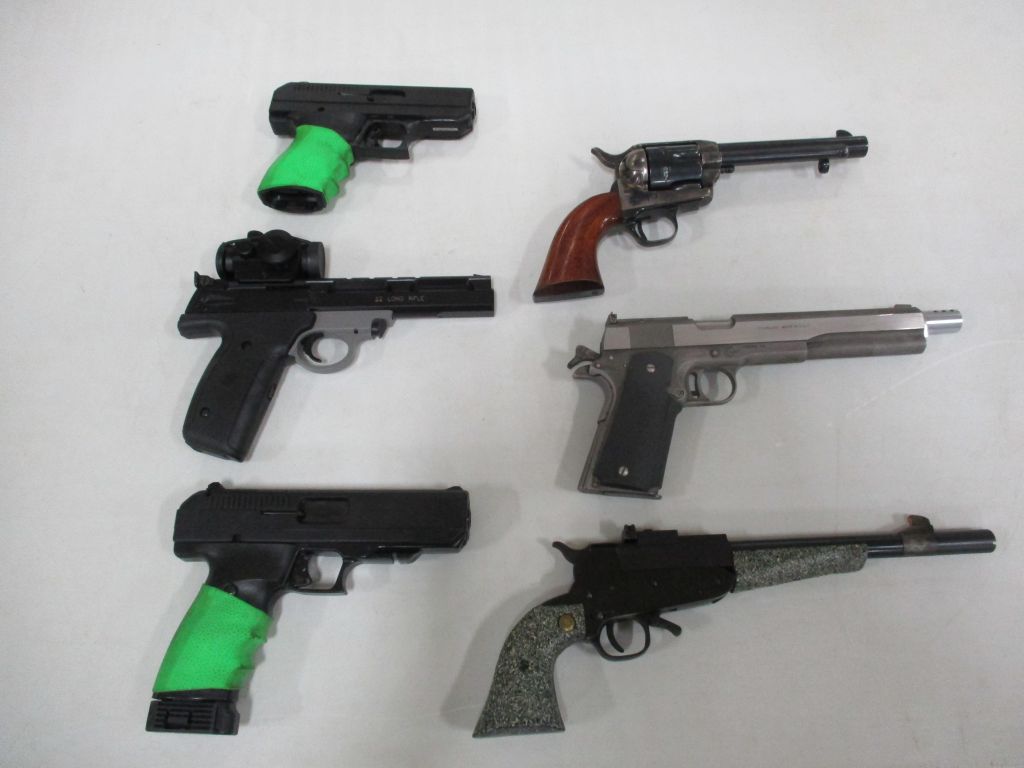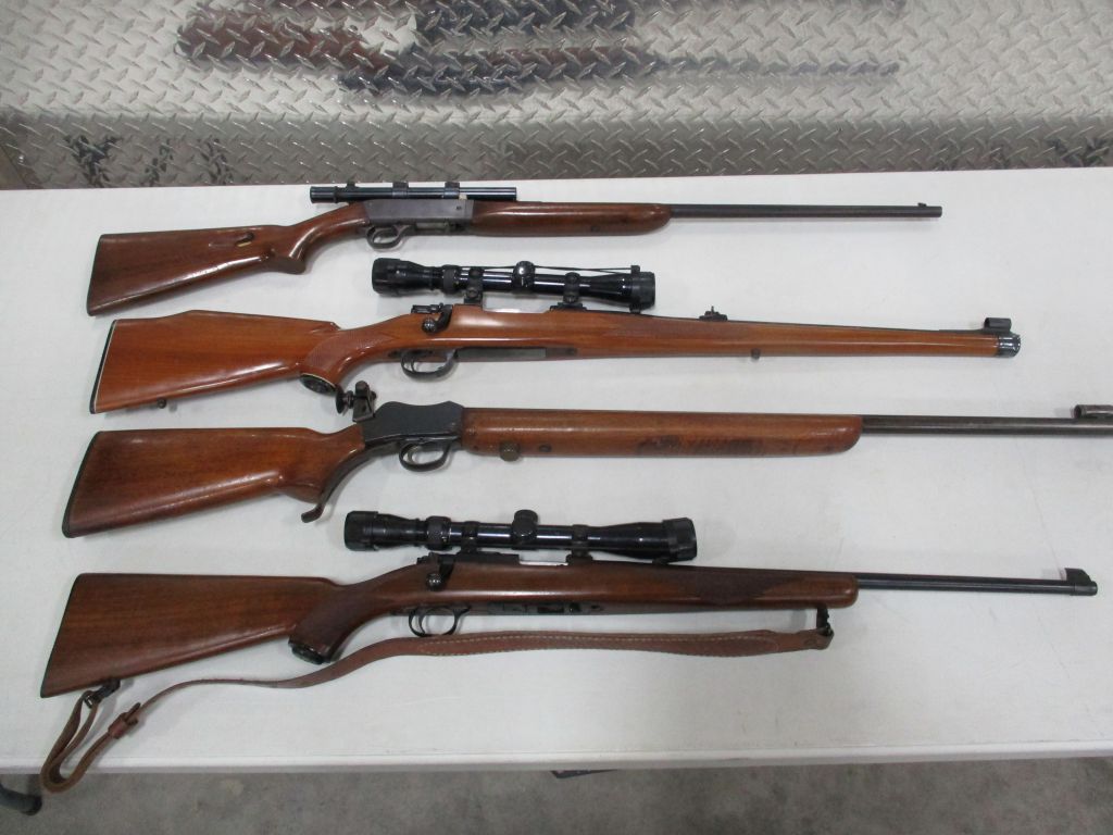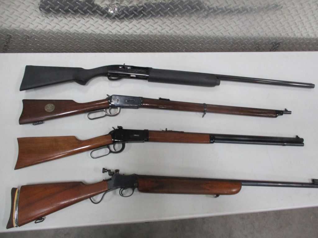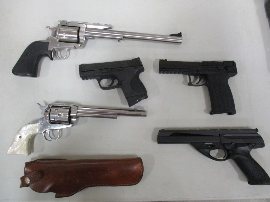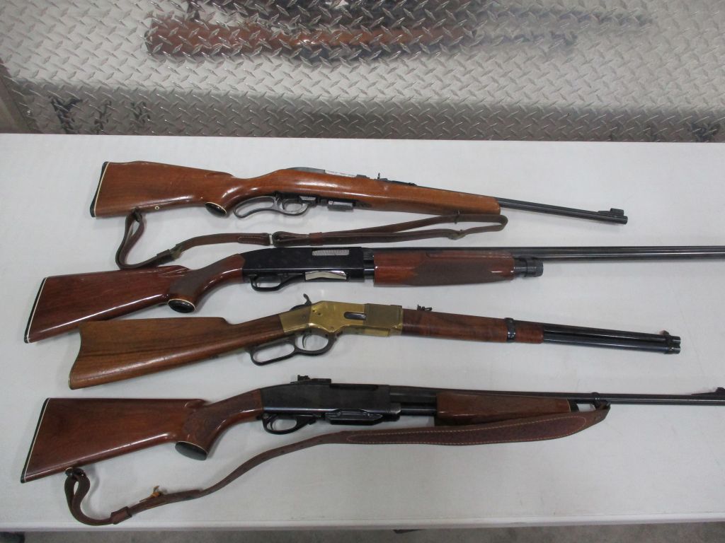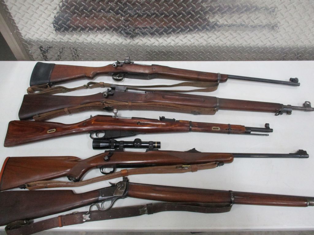 Hecker & Koch S.P. 5, 9MM, new in box – CMMG Banshee (titanium) 9MM, new in box – Savage 22 LR (semi Auto) w/Leupold M8-4X scope (new) – Savage Model 93, .17 HMR w/3×12 scope – Reminton Model 514, 22 cal, 5 shot – Victor Ejector 12 gage – Winchester Model 62A, 22 Cal – Ithaca 32, 12 gage – Winchester 50, 12 gage – Winchester model 1300, 20 gage pump – Winchester 67A, 22 cal. bolt action – Browning Belgium 22 semi auto, engraved & checkering, 4×20 scope – Ruger BX-25, double magazine 50 rounds – Kel Tec PLR-22 pistol?SU-22 rifle, 22 cal. collapsible lightweight, brand new in box – Kel Tec PMR-30, 22 cal. semi auto hand gun, new in case – Beretta U22, NEOS, 22 cal. semi auto handgun, new in case – Smith & Wesson M&P 9c 9MM stainless semi auto handgun, brand new in case – Magnum Research BFR 6 shot revolver 22 Hornet, 10″ barrel, like new – Ruger Vaquero Revolver 44 Mag. stainless, pearl grips, leather holster – Mossberg model 185, bolt action 20 gage w/magazine – JC Higgins model 583, 12 gage bolt action – Remington model 770, 243 Win Bushnell scope – Zastava 7.62 x 39MM, 3 magazines – Weatherby 12 gage pump, – Savage Axis 270 Win Leupold scope – Winchester Canadian Centinela 1867-1967, 30-30 – Winchester NRA Commemorative 1871-1971, 30-30 – Winchester 1917, 30-06 bolt action – Winchester Winder Musket, 22 Cal. short, Lyman peep site, Military markings – Winchester 1300XTR, 12 gage, 28″ barrel – Marlin 1894, 357 Mag carbine – Marlin M62, 30 Cal US carbine – Remington 1917 30-06 Military, bolt action – Remington 760, 243 Cal. pump – Remington Sportsman, 12 gage – Remington 22 Auto speed master – Remington 1100 semi auto, 12 gage – Ruger 77, 30-06 bolt action, Leopold scope – Ruger 77/22 bolt action, Tasco scope – Ruger 10/22, 22 cal. w/Bushnell scope – Ruger 357 Mag. security six – Ruger 357 Mag. Blackhawk – Smith & Wesson 38 Special revolver military – Smith & Wesson 22A-1, 22 cal – Colt Frontier Scout 22 Mag. 4.5″ barrel – Arthemis 410 over/under, engraved – PW 12 gage lever action – Navy Arms/Win 1866 lever action, 44-40 Cal. SRC carbine – Interarms Mark X 30-06 bolt action, Tasco scope – Martini Greener 357 Mag. lever action, Commonwealth of Australia – Martini Greener 22 Cal. 1st model – Martini Greener 22 Cal. 2nd model – Springfield/Stevens 12 gage double barrel – Harrington Richardson 12 gage single shot – Mossberg 20 gage bolt action – Rossi 12 gage double barrel hammer – Colt Super Comanche 45 long single shot – AMT Hardballer 45, stainless steel, 7″ barrel – Hi Point JHP, 45 Cal, 2 mag – Cimarron 44-40 Cal. 6 shoot, 5.5″ barrel – EAA 38 Special revolver – Davis Derringer 38 special – Iver Johnson 38 cal. hammerless revolver – Hi Point C9, 9MM luger – ERMA Luger 380 cal. – Davie derringer 22 cal. – Harrington Richards 22 Special, 22 Cal. – Savage 64, 22 cal. semi auto, scope – Russian 7.62x54r bolt action – Russian Tokarev 7.62×25 – Star 9M cal –