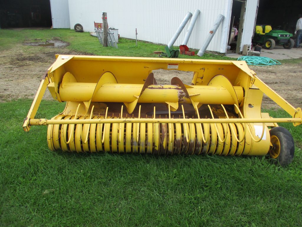 2010 John Deere 328 baler w/#42 thrower, 1 owner like new, low use – New Holland BR740 Round baler, twine, nice – New Holland 790 Chopper, Metal Alert II, Hyd spot & Tonge – NH 7 1/2′ Hay head – NH 824, 2R corn head – JD 800 swather, 9′ head – Meyers 16′ chopper box w/tandem gear – Miller Pro 5200, 16′ chopper box, Miller Pro tandem gear – (3) H&S 8′ x 16′ Metal bale wagons – (2) 8′ x 16′ Wooden flat wagons – Peerless roller mill blower – (2) Gehl 1540 blowers – 9′ x 16′ Metal bale rack, No wagon or floor – Allied 42′ Bale conveyer
